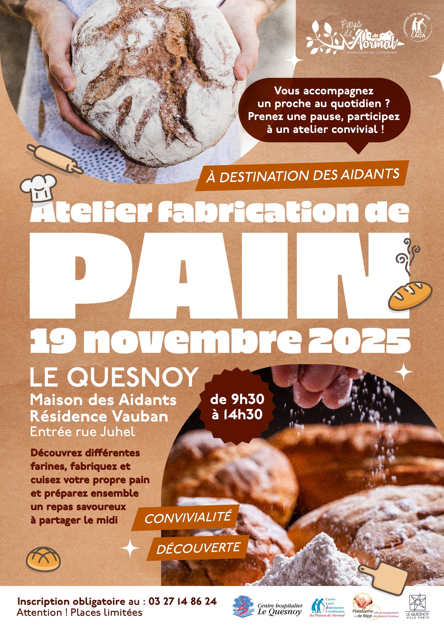 Dans le cadre de la démarche Communauté Amie des Aînés du Pays de Mormal, la Plateforme de répit et le CLIC du Plateau de Mormal vous invitent à un atelier découverte autour de la fabrication du pain 🍞
