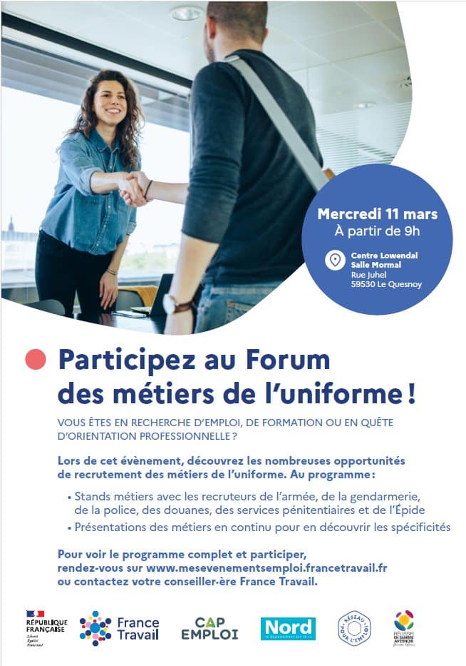 🟢 Ne manquez pas le Forum des métiers de l'uniforme qui se tiendra le 11 mars au Centre Lowendal, rue Juhel