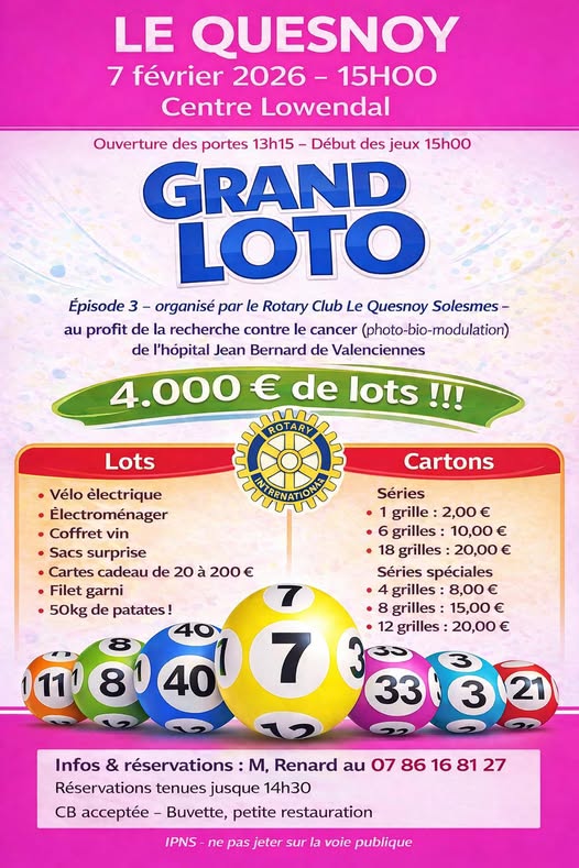 GRAND LOTO du Rotary Le Quesnoy-Solesmes