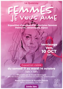 Exposition d’œuvres d’art d’artistes femmes (peinture, céramique, bijoux), artistes qui cèdent 20 % de leurs ventes à la recherche contre le cancer