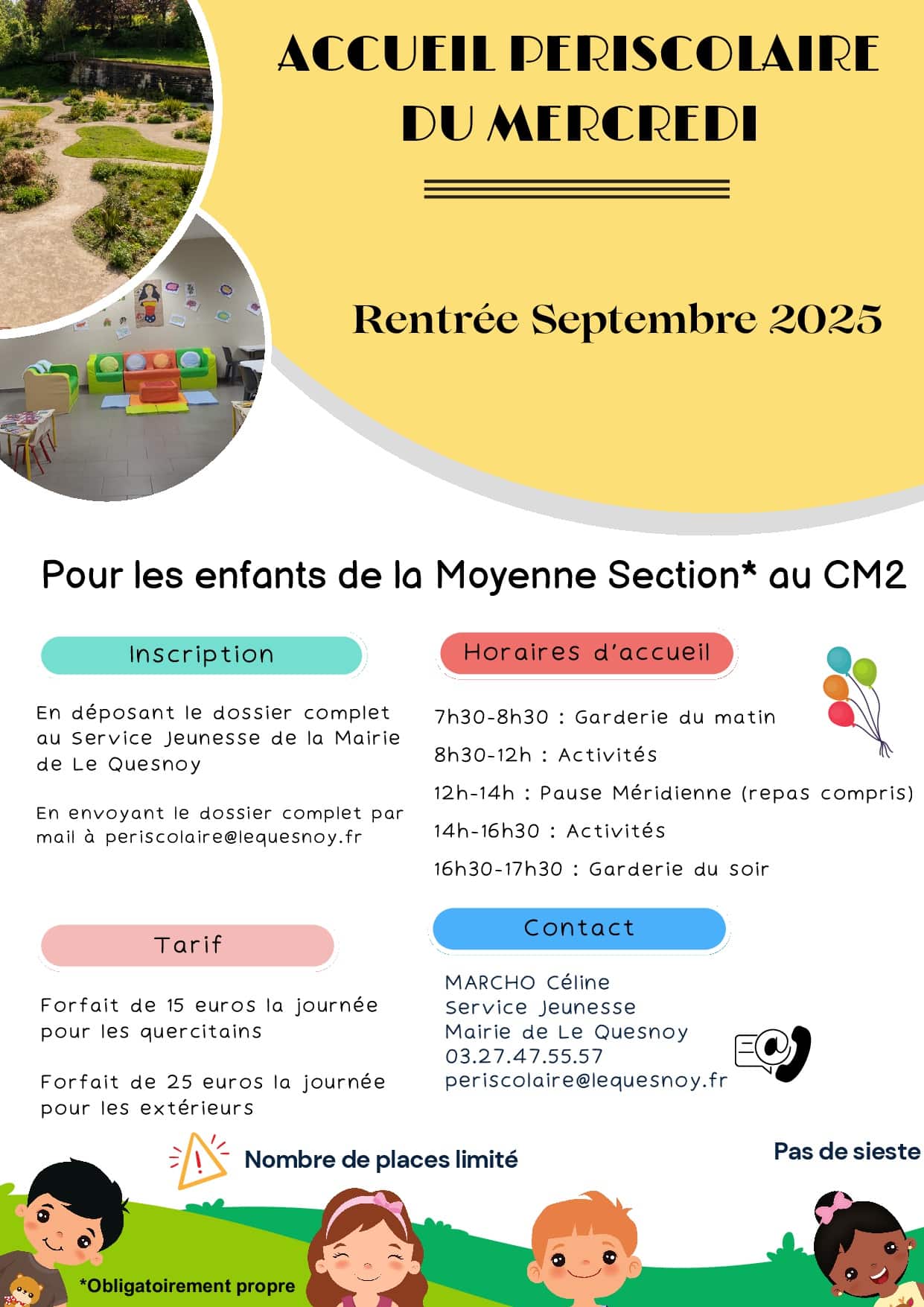 - éventuellement d’une fiche de réservation mensuelle ou annuelle pour la garderie, la restauration et/ou l’accueil périscolaire du mercredi