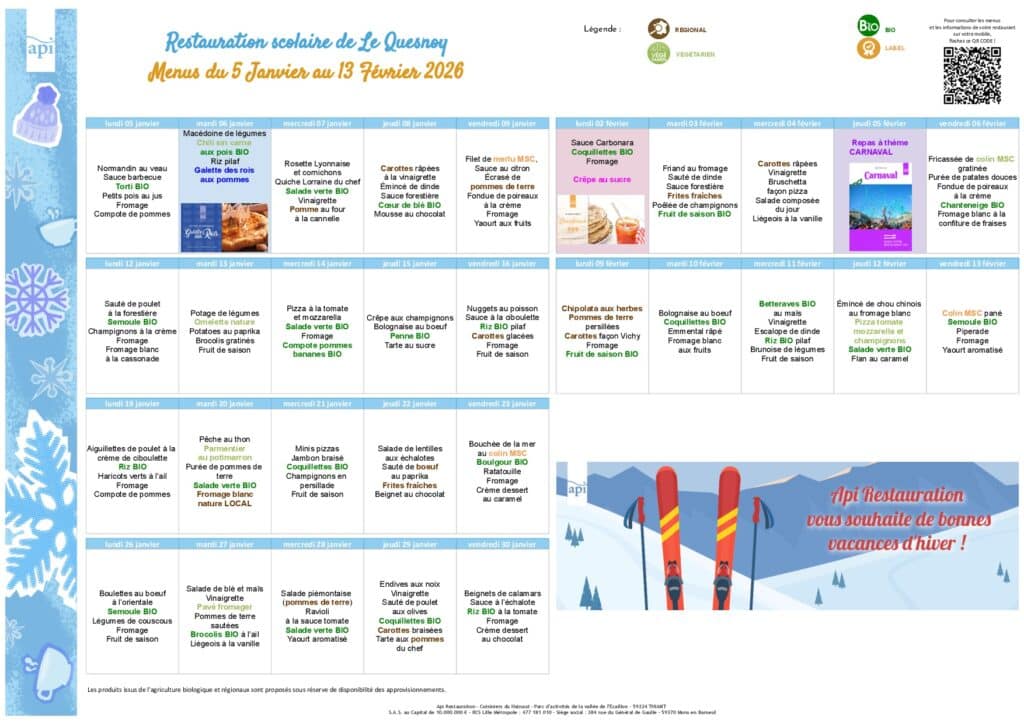 La Ville de Le Quesnoy & Api Restauration mettent en œuvre un service de restauration scolaire de qualité, dont les maîtres-mots sont équilibre et diversité des repas !